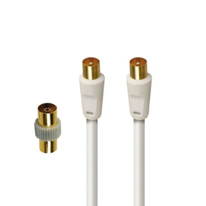 CORDON TV MÂLE/MÂLE 9,52MM BLANC 5M + ADAPTATEUR FEMELLE