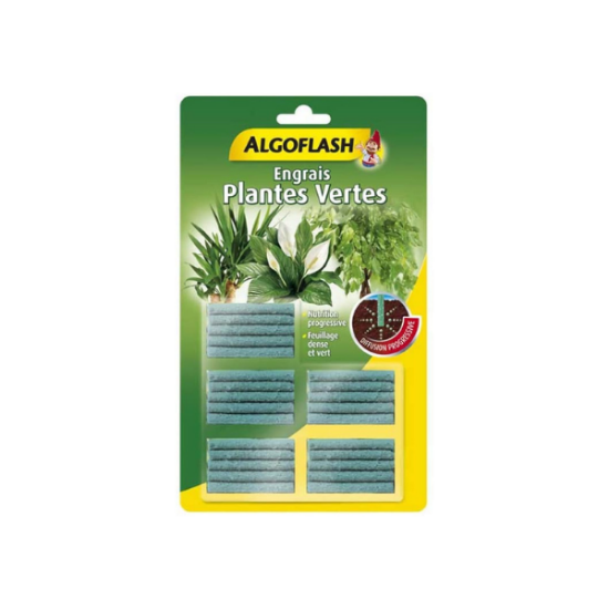 L'Engrais Bâtonnets Plantes Vertes Algoflash contient les éléments nutritifs (Azote, Phosphore, Potassium) indispensables à la nutrition et à la croissance de vos plantes.
