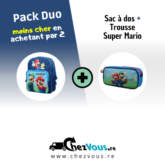 Une rentrée encore plus sympa avec ce pack duo comprenant un nouveau cartable Super Mario de 38 cm et une trousse Super Mario.