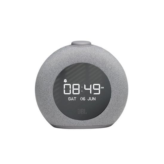 Éveillez-vous en compagnie du son JBL Pro. L'Horizon 2 JBL apporte la touche finale dans une chambre grâce à son design arrondi, son éclairage LED ambiant LED et sa radio DAB/DAB+/FM. L’heure, les réglages d’alarme et les informations de la radio sont clairement lisibles grâce au grand écran LCD, tandis que le revêtement moderne en tissu s’intègre à n’importe quel décor. Choisissez une sonnerie d’alarme parmi notre sélection ou optez pour l’une de vos stations radio DAB, DAB+ ou FM préférées. Le bouton de commande rotatif intuitif permet de régler et de mettre temporairement les alarmes en pause (Snooze), d’ajuster le volume ou d’allumer et éteindre la lumière ambiante. Avec ses deux ports USB pratiques pour recharger vos appareils, l'Horizon 2 JBL est le parfait compagnon de chevet.