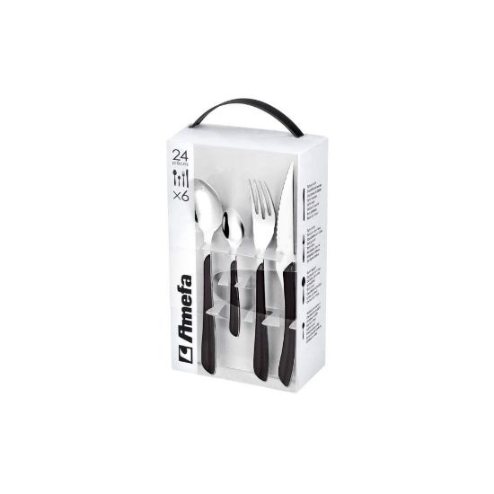 Lot de 24 couverts comprenant 6 couteaux de table, 6 fourchettes, 6 cuillères à café, 6 cuillères de table